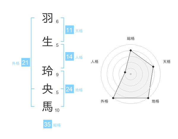 羽生 玲央馬さんを姓名の画数から五運を鑑定