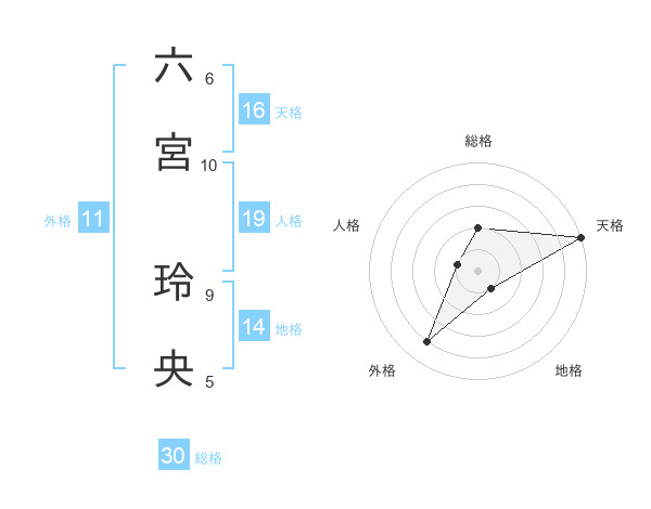 六宮 玲央さんを姓名の画数から五運を鑑定