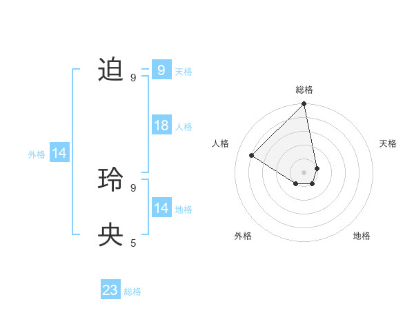 迫 玲央さんの総格は23画の5点!