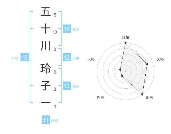 五十川 玲子一さんを姓名の画数から五運を鑑定