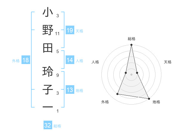 小野田 玲子一さんを姓名の画数から五運を鑑定