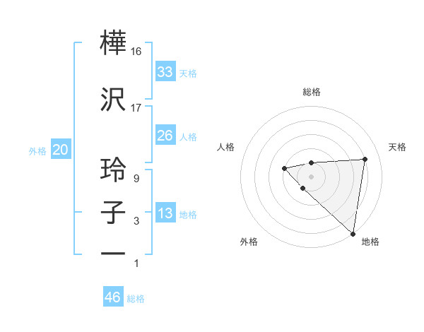 樺沢 玲子一さんの地格は13画の5点!