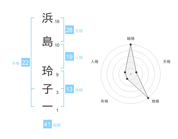 浜島 玲子一さんを姓名の画数から五運を鑑定