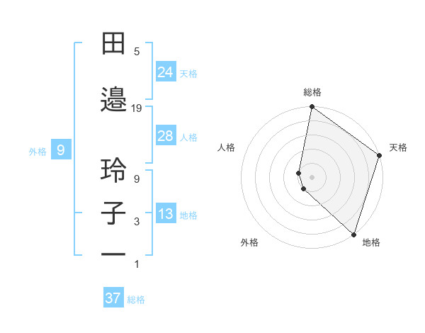 田邉 玲子一さんの総格は37画の5点!