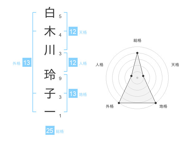 白木川 玲子一さんの総格は25画の4点!