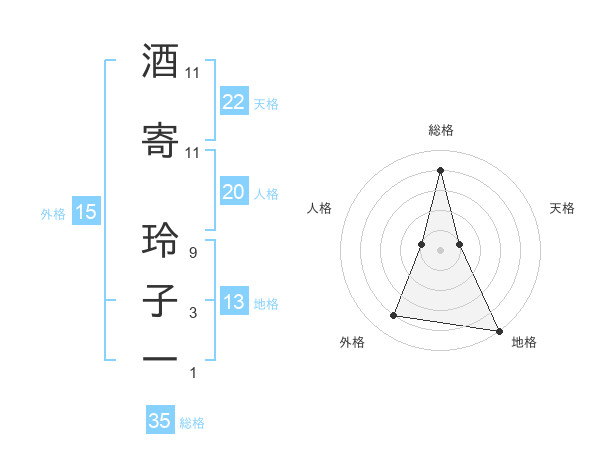 酒寄 玲子一さんの総格は35画の4点!