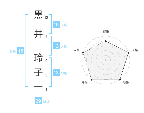 黒井 玲子一さんを姓名の画数から五運を鑑定