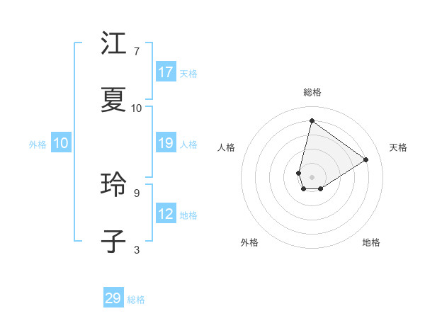 江夏 玲子さんを姓名の画数から五運を鑑定