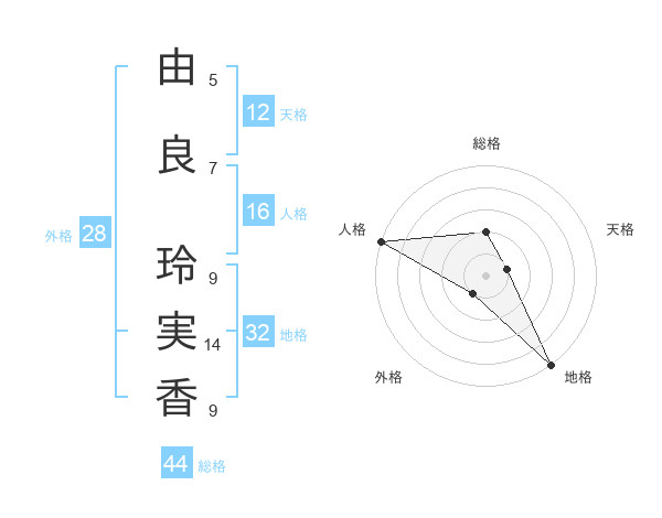 由良 玲実香さんを姓名の画数から五運を鑑定