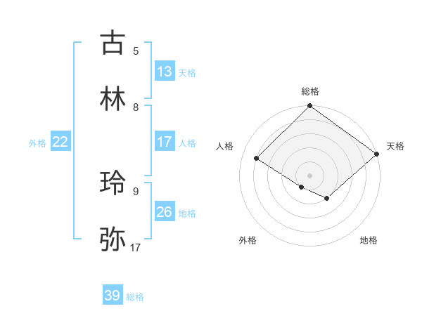 古林 玲弥さんを姓名の画数から五運を鑑定