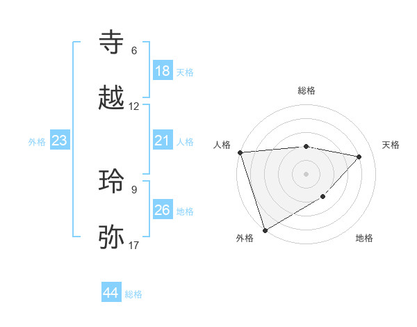 寺越 玲弥さんの外格は23画の5点!