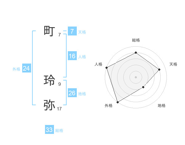 町 玲弥さんの総格は33画の4点!