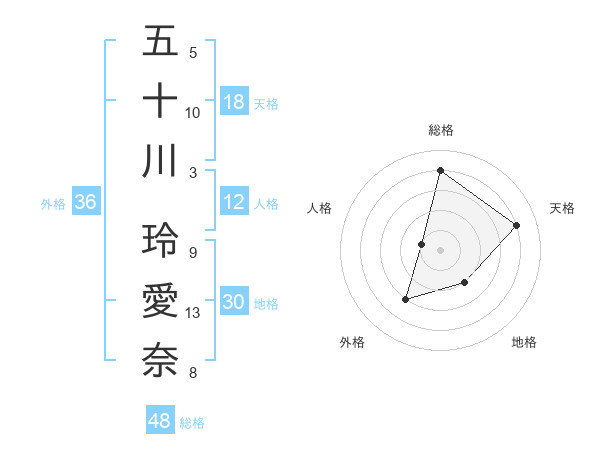 五十川 玲愛奈さんを姓名の画数から五運を鑑定