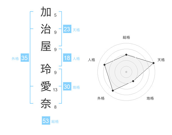 加治屋 玲愛奈さんを姓名の画数から五運を鑑定