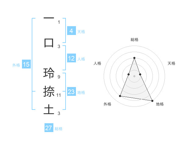 一口 玲捺土さんの総格は27画の3点!