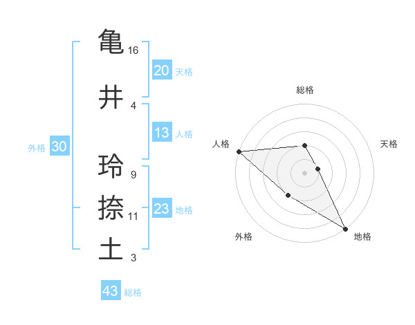 亀井 玲捺土さんを姓名の画数から五運を鑑定