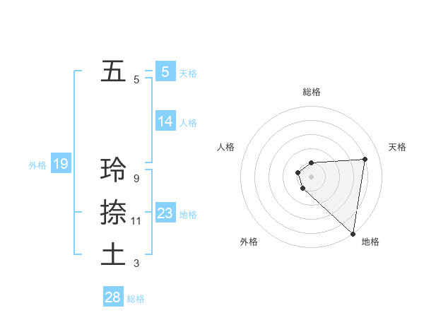 五 玲捺土さんを姓名の画数から五運を鑑定