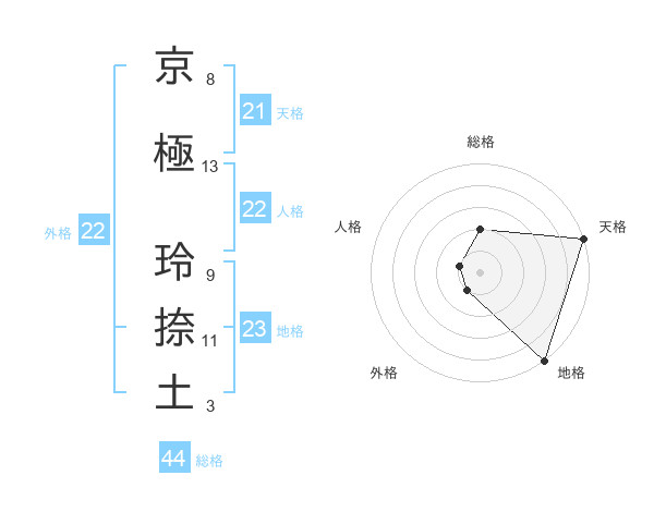 京極 玲捺土さんの天格は21画の5点!
