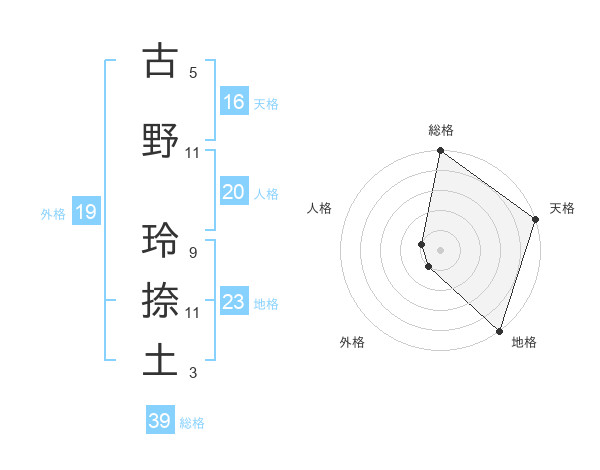 古野 玲捺土さんを姓名の画数から五運を鑑定