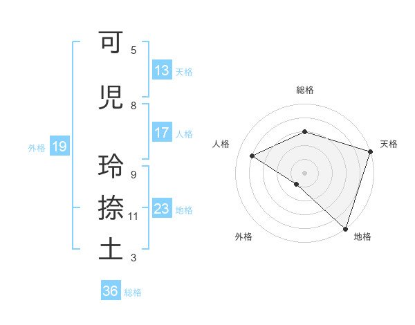 可児 玲捺土さんの地格は23画の5点!