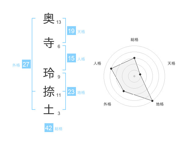 奥寺 玲捺土さんの外格は27画の3点!