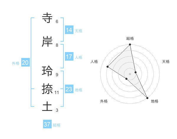 寺岸 玲捺土さんの総格は37画の5点!