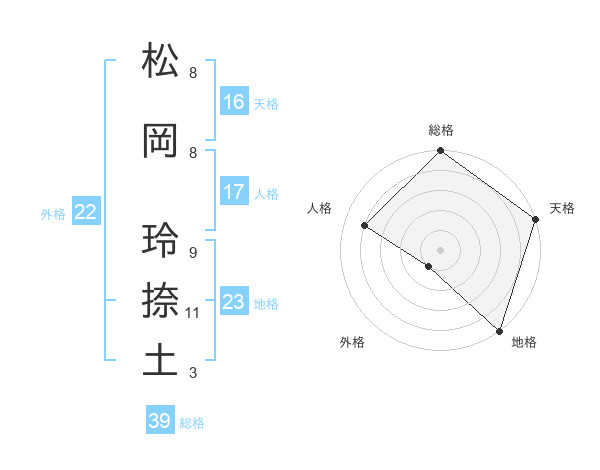 松岡 玲捺土さんを姓名の画数から五運を鑑定