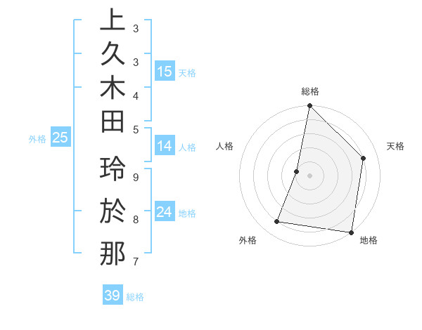 上久木田 玲於那さんの総格は39画の5点!