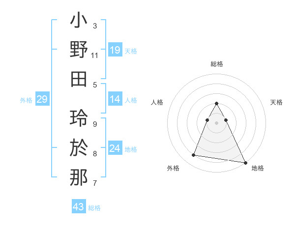 小野田 玲於那さんの総格は43画の2点!