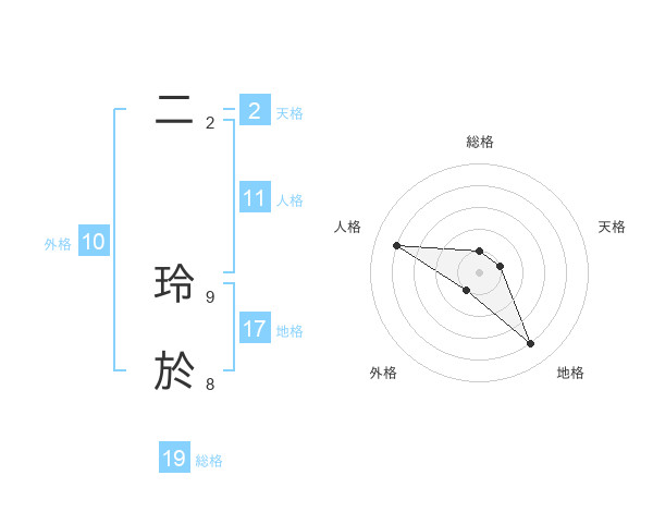二 玲於さんの外格は10画の1点!