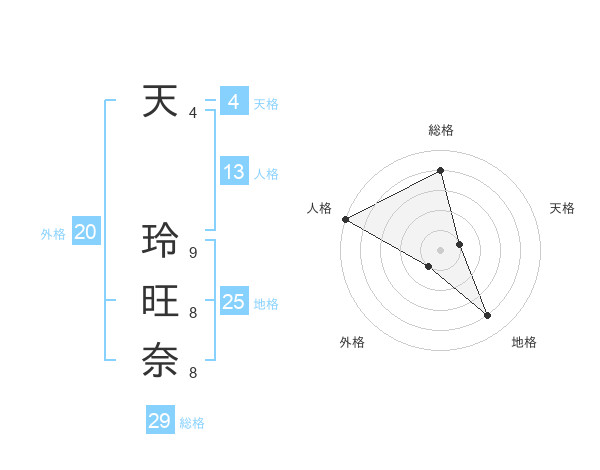 天 玲旺奈さんの総格は29画の4点!