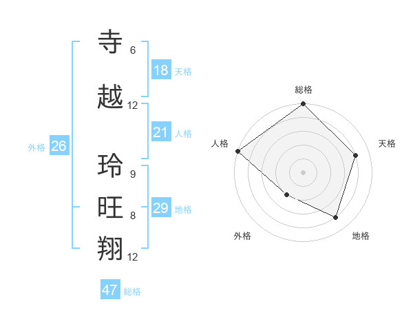 寺越 玲旺翔さんを姓名の画数から五運を鑑定