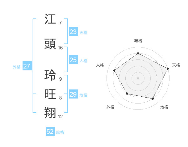 江頭 玲旺翔さんを姓名の画数から五運を鑑定