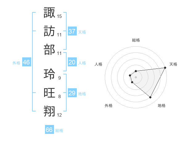 諏訪部 玲旺翔さんの外格は46画の1点!