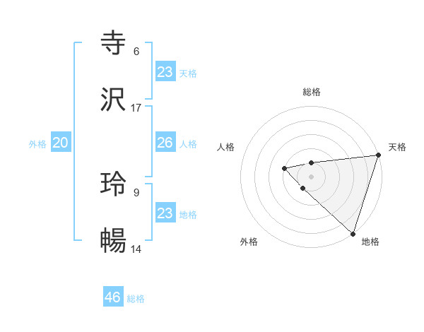 寺沢 玲暢さんを姓名の画数から五運を鑑定