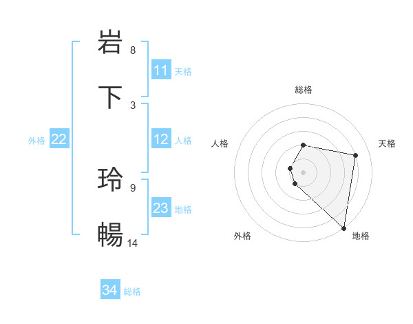 岩下 玲暢さんの外格は22画の1点!