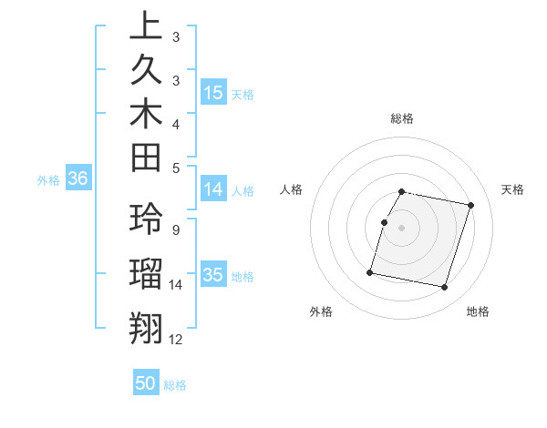 上久木田 玲瑠翔さんの天格は15画の4点!