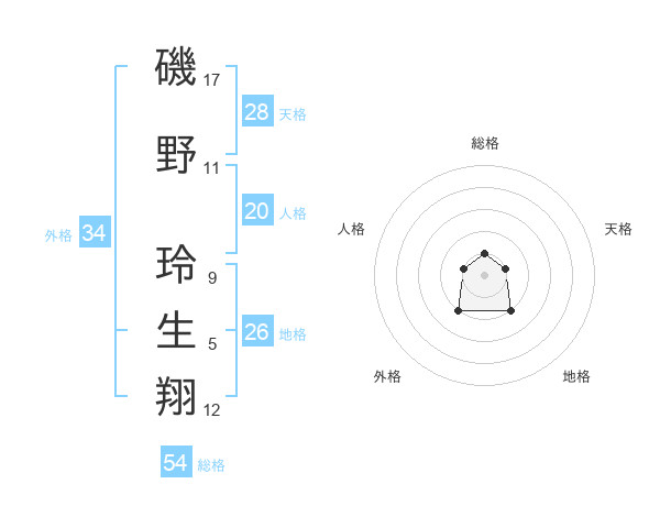 磯野 玲生翔さんを姓名の画数から五運を鑑定