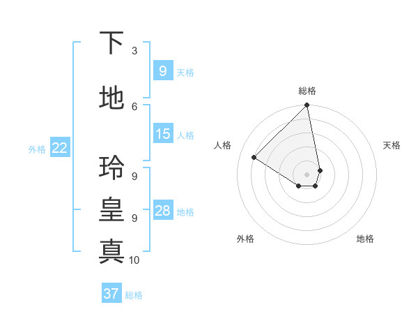 下地 玲皇真さんを姓名の画数から五運を鑑定