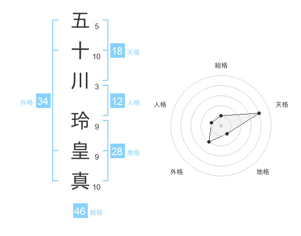 五十川 玲皇真さんの天格は18画の4点!