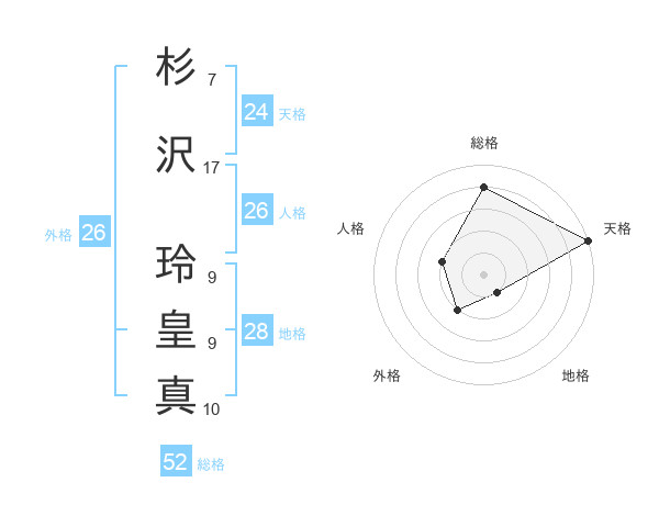 杉沢 玲皇真さんを姓名の画数から五運を鑑定