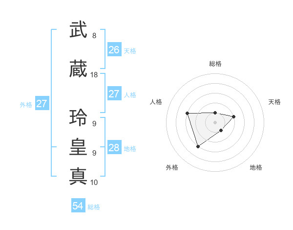 武蔵 玲皇真さんの外格は27画の3点!