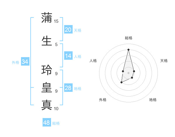 蒲生 玲皇真さんを姓名の画数から五運を鑑定