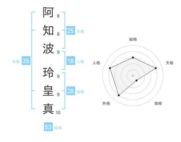 阿知波 玲皇真さんを姓名の画数から五運を鑑定