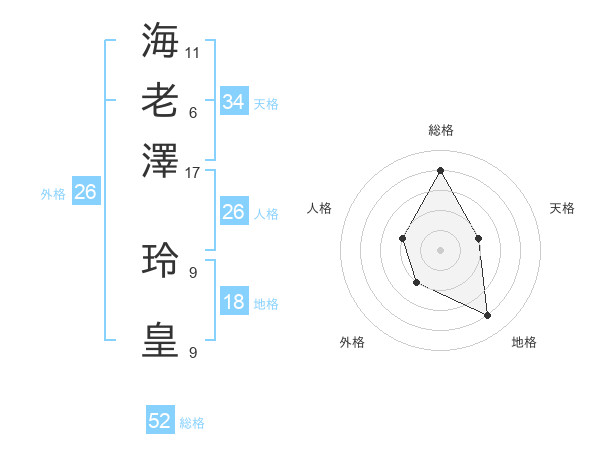 海老澤 玲皇さんを姓名の画数から五運を鑑定