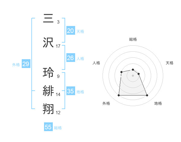 三沢 玲緋翔さんの天格は20画の1点!