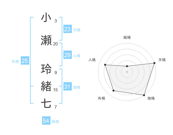 小瀬 玲緒七さんを姓名の画数から五運を鑑定
