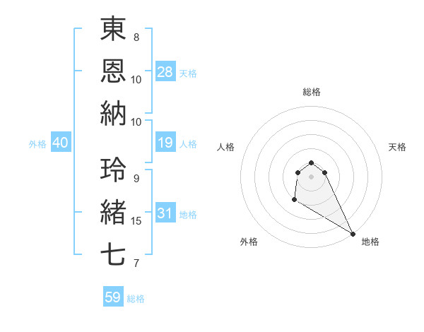 東恩納 玲緒七さんを姓名の画数から五運を鑑定