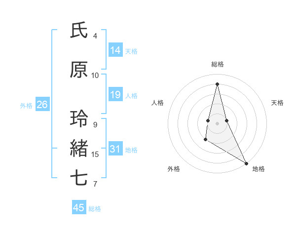 氏原 玲緒七さんを姓名の画数から五運を鑑定