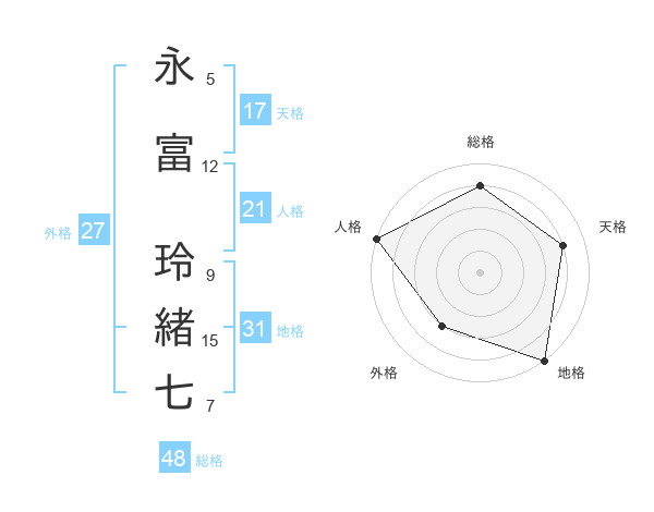永富 玲緒七さんを姓名の画数から五運を鑑定